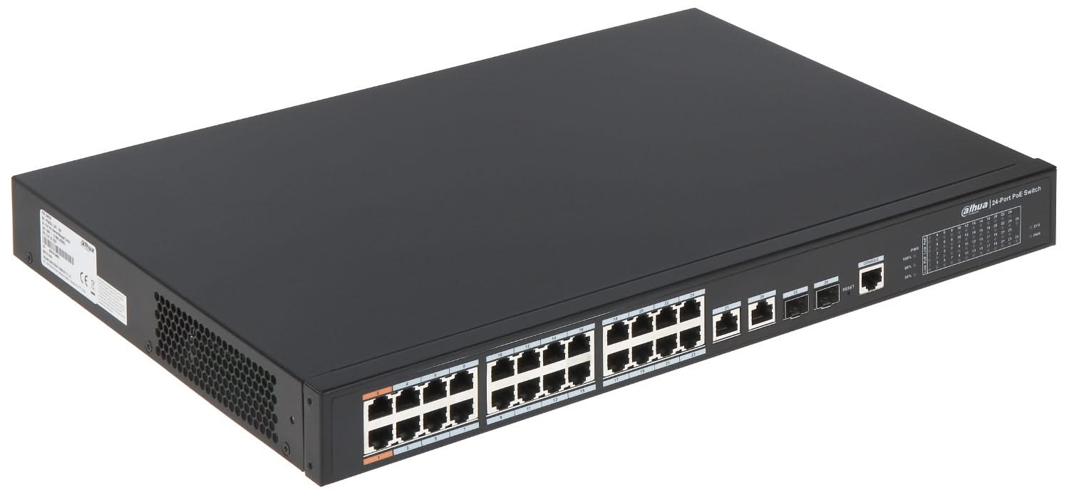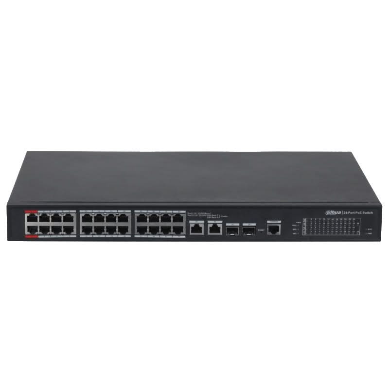 DH-PFS4226-24ET-360 is a type of Layer-2 managed PoE switch. It provides 24 PoE 100Mbps ports and 2 gigabit uplink combo ports. The total load is 240W.