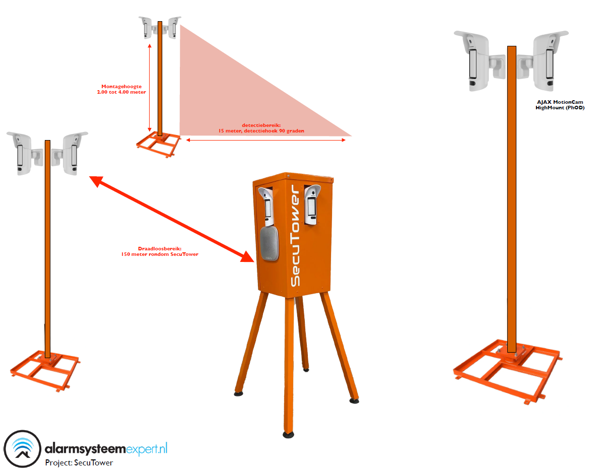 SecuTower Mât carré inclinable en aluminium pour caméra 4 mètres RAL-2004