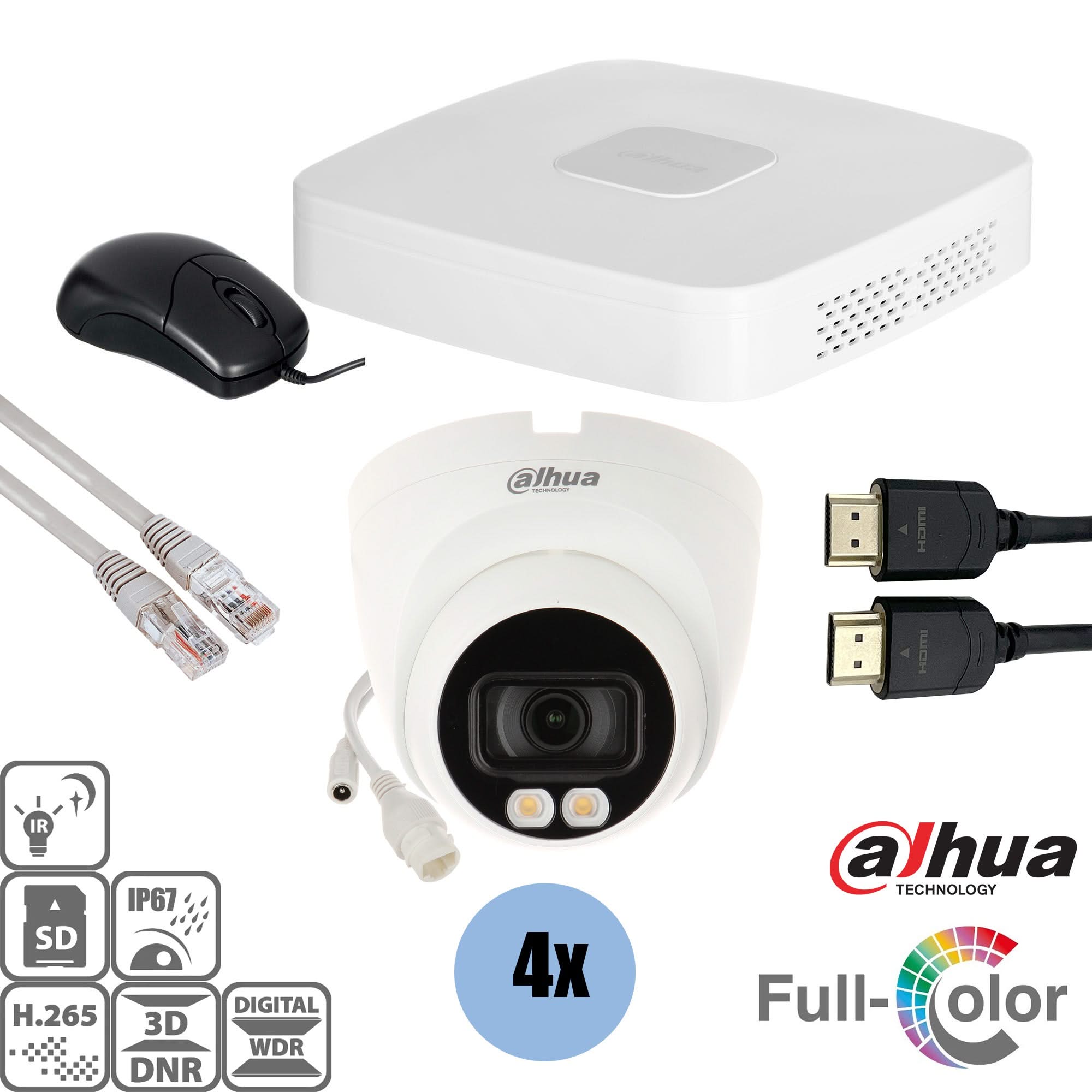 Set 4x Turret Full-Color 4MP + Recorder & Bekabeling