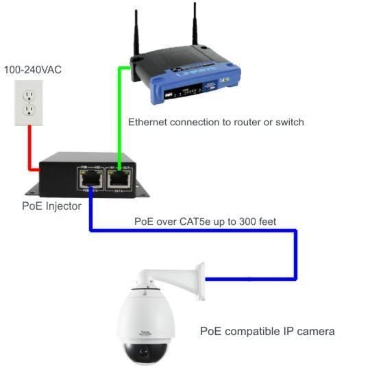 PoE-injektor, 48V, 0,5Ah