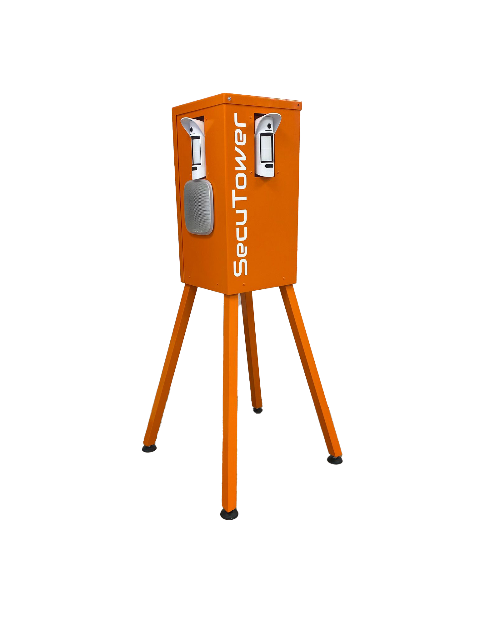 SecuTower-övervakningsstolpen är speciellt utformad för tuffa förhållanden som t.ex. byggarbetsplatser. Den är tillverkad av galvaniserat stål och är väderbeständig och transporttålig. Tornet är pulverlackerat i en slående orange färg för igenkänning och förebyggande åtgärder.